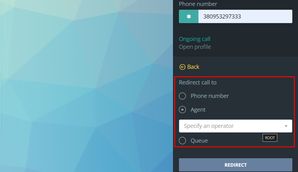 - Додали можливість переадресувати абонента на зовнішній номер телефону, на користувача або в чергу, оформивши це випадаючим списком з можливістю пошуку.