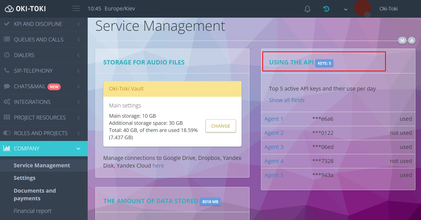 У розділі “Керування послугами” додано віджет, який допоможе контролювати витрати на API-виклики – віджет відображає всі активні api-ключі в системі та рахує кількість api-викликів, здійснених за допомогою цих ключів.