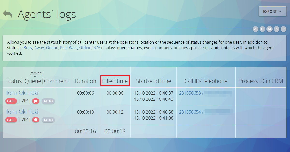 Не буде враховуватися час виклику (з’єднання і гудки) довше 30 секунд. Тобто якщо оператор чекав розмови 31 секунду – буде відображатися 0.
