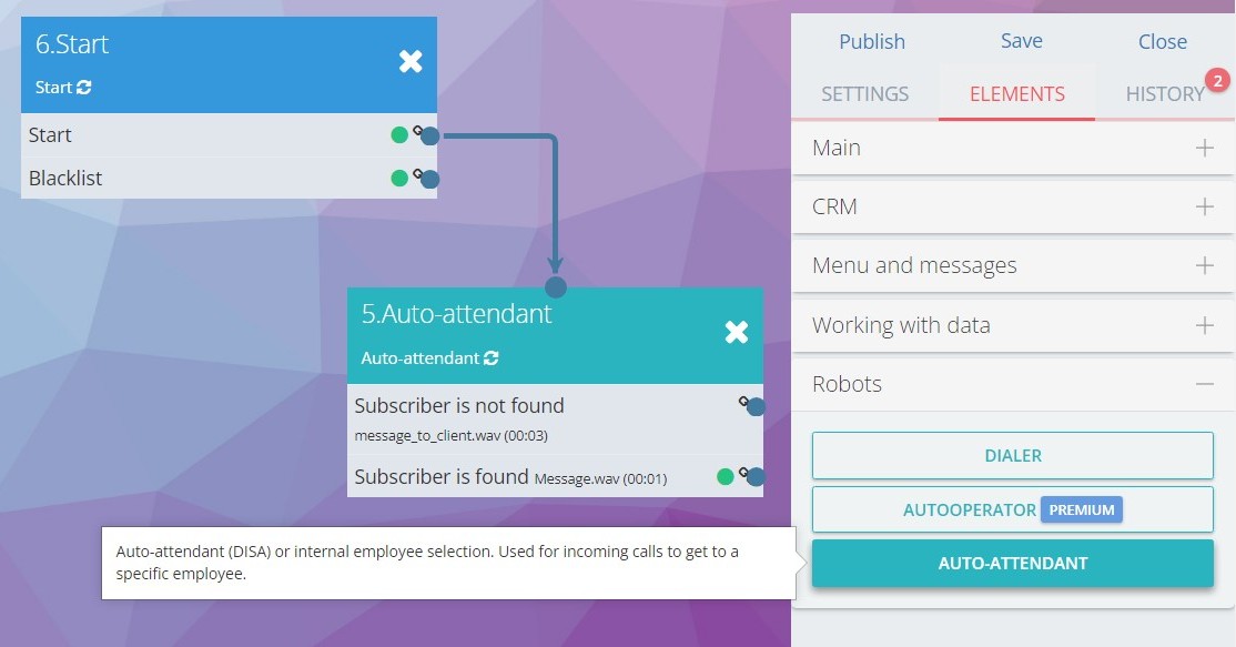 Автосекретар – робот, який може з’єднати з конкретним співробітником компанії, якщо клієнт вкаже його персональний (внутрішній) номер. Підходить для колл-центрів, що надають персонального менеджера.