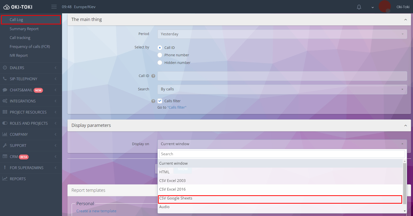 Схоже на інтеграцію з першого пункту, але є не автоматичним процесом, а ручною дією. Наприклад, якщо потрібно відправити замовнику всі аудіозаписи за проект. Кілька дій і записи відправилися на Ваш диск, і залишиться тільки поділитись папкою з замовником. З наявністю інтеграції з першого пункту, фільтри для вивантаження розмов за осінь по конкретній черзі виглядають так.