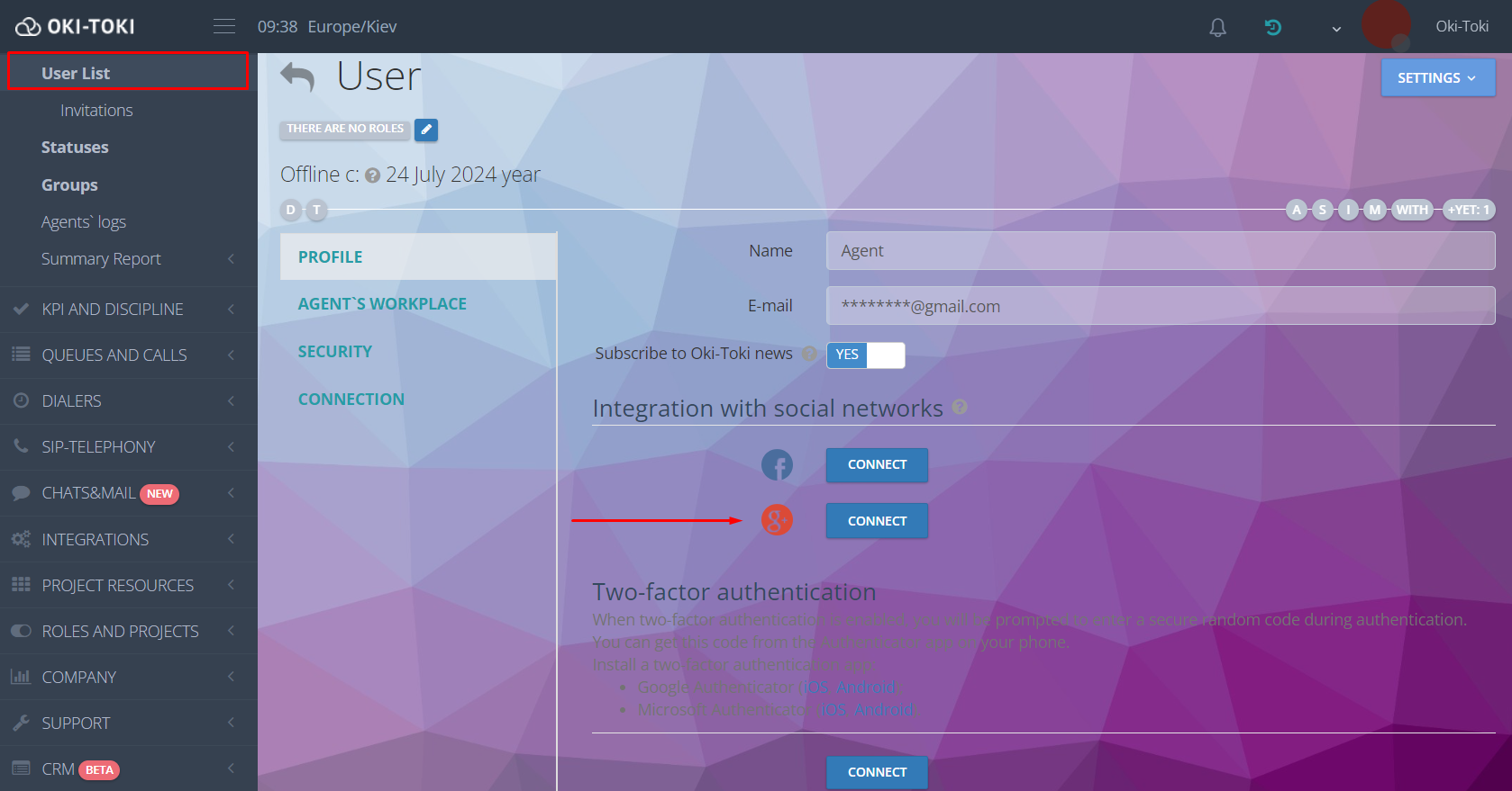 Прив’язка користувача Окі-Токі до Гугл-акаунту, яка дозволяє надалі авторизуватися не використовуючи наші авторизаційні дані, а натиснувши на іконку Гугл. Прив’язка здійснюється в налаштуваннях користувача за два натискання, а в меню авторизації є відповідна іконка для входу.